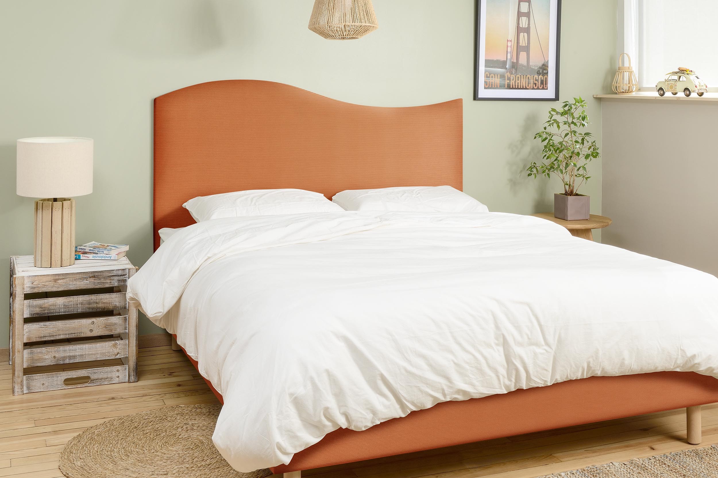 Vous pouvez coordonner cette tête de lit Tête de lit - Velours Côtelé Carotte avec notre Sommier à Lattes et Cache-sommier du même coloris.