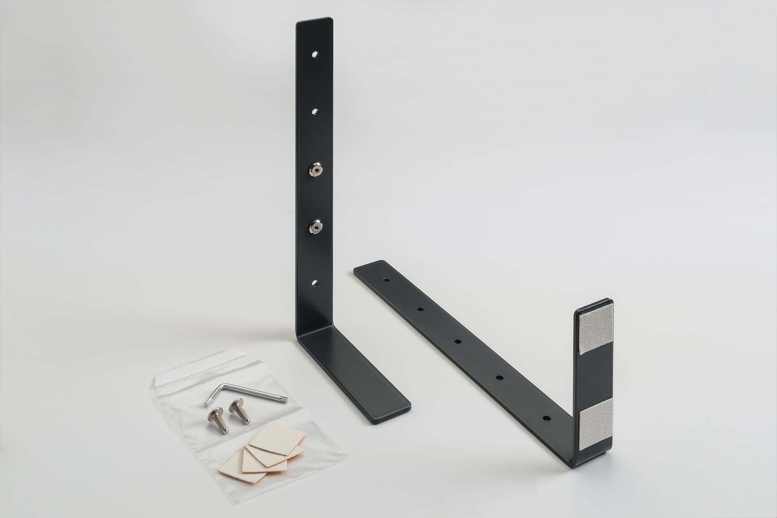 Equerres Deux équerres en métal laquées : placées à 25 cm du bord extérieur de la tête de lit