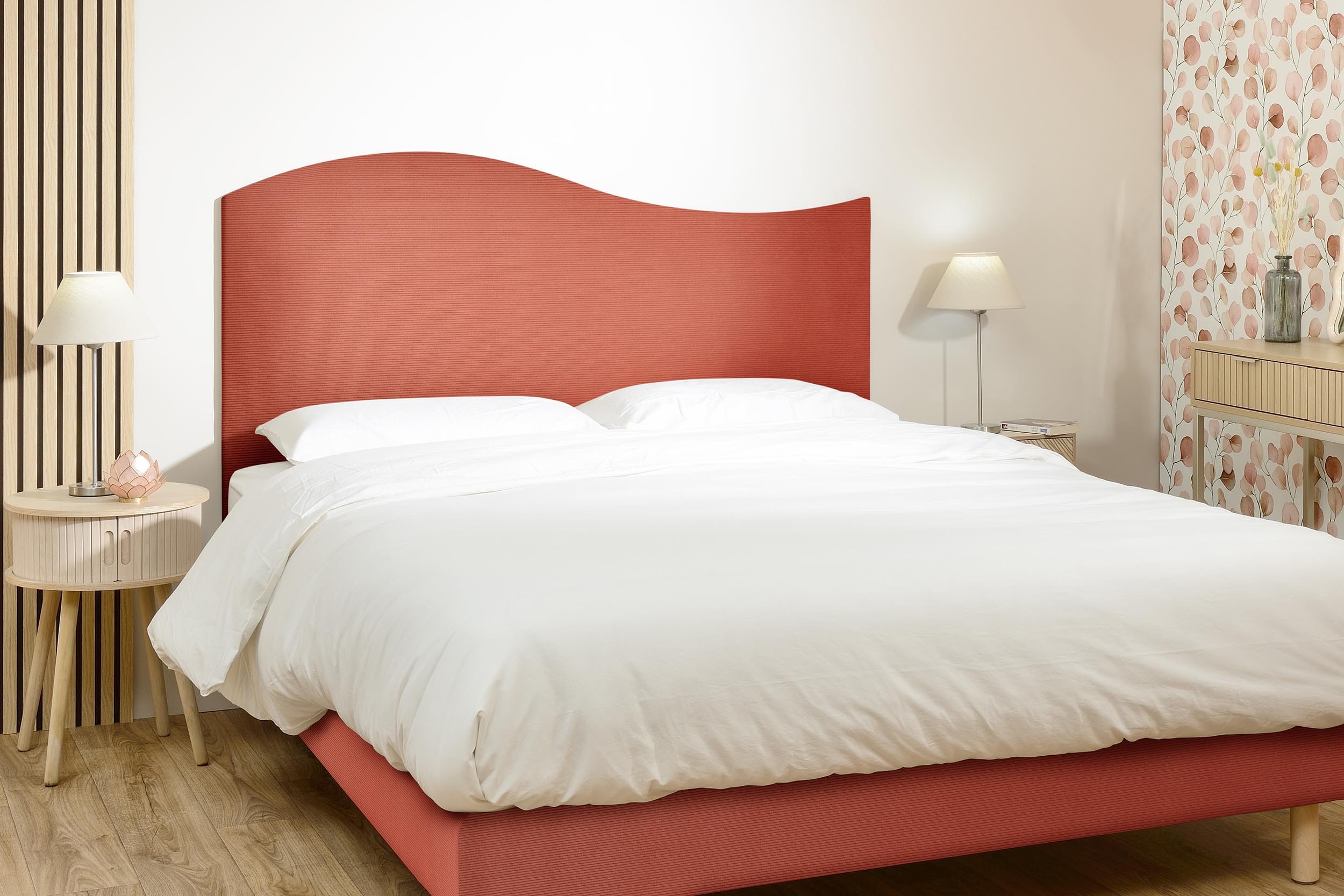 La tête de lit Corail, est habillée d'un tissu en Velours Côtelé cosy et tendance. Comme toutes nos têtes de lit, elle comprend une couche de ouate et de mousse, ce qui la rend confortable et pratique. Sa couleur rouge corail, très tendance, amènera de la gaieté et de la douceur à votre chambre.