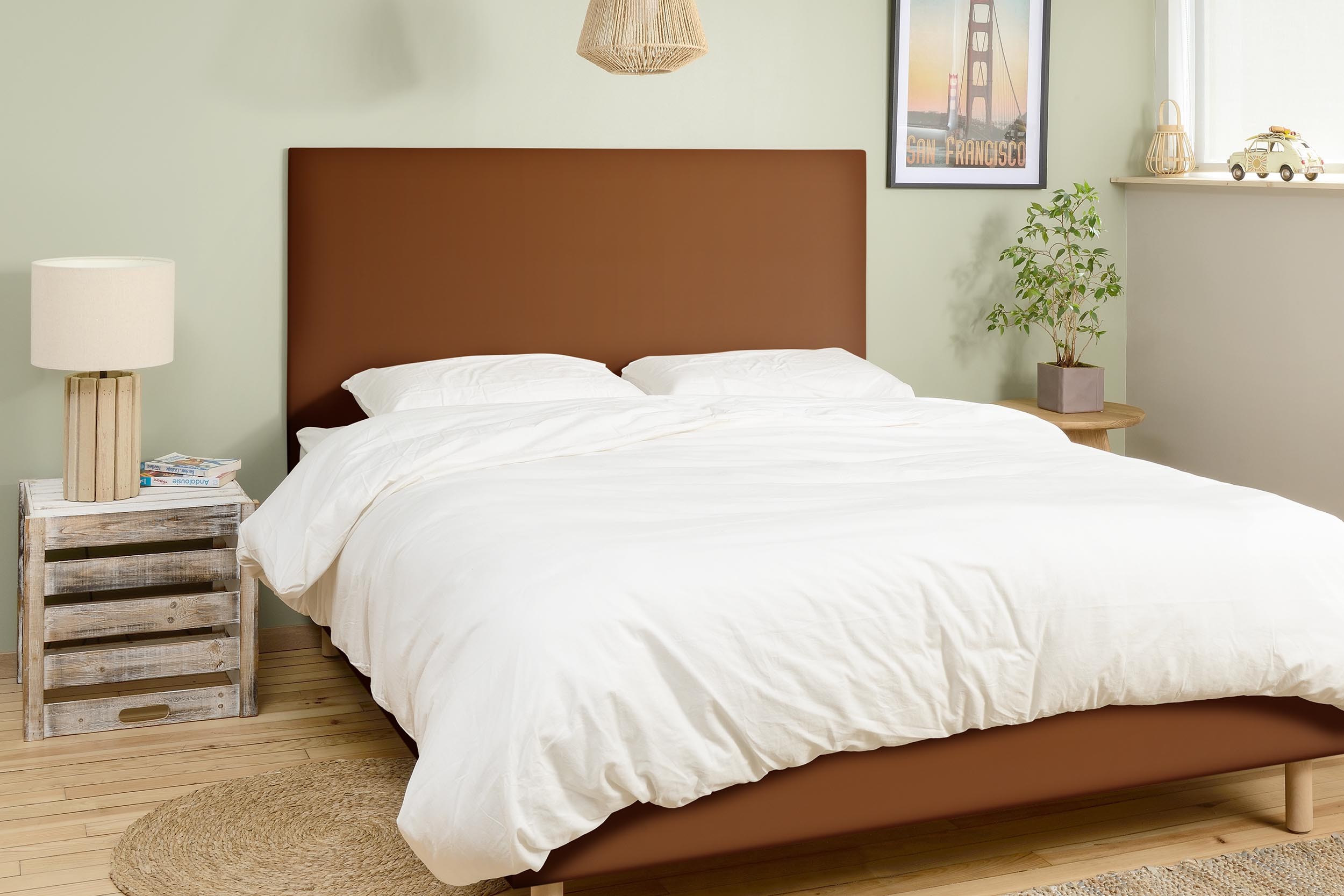 Vous pouvez coordonner cette tête de lit Simili Cuir Ecureuil avec notre Sommier à Lattes et Cache-sommier du même coloris.