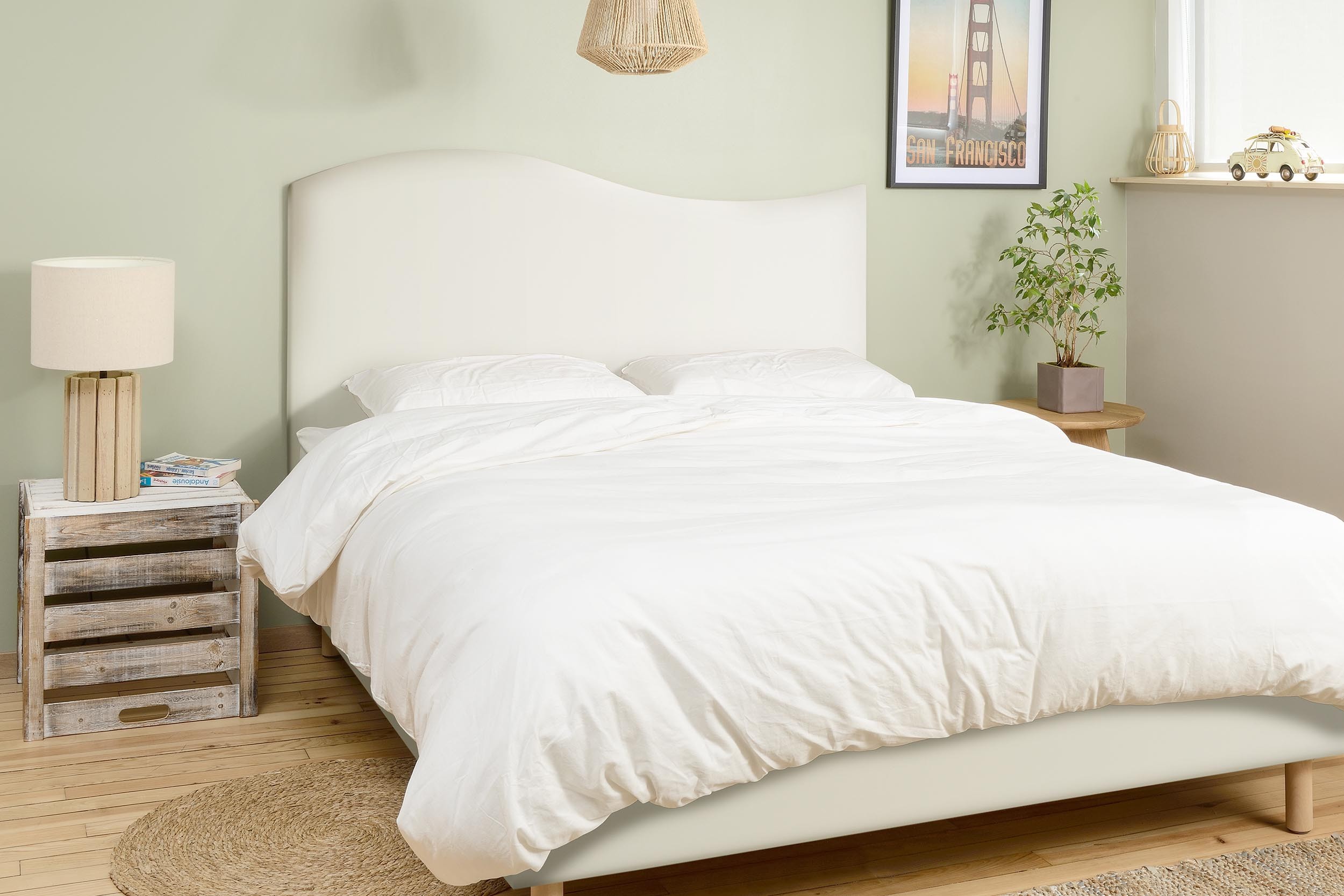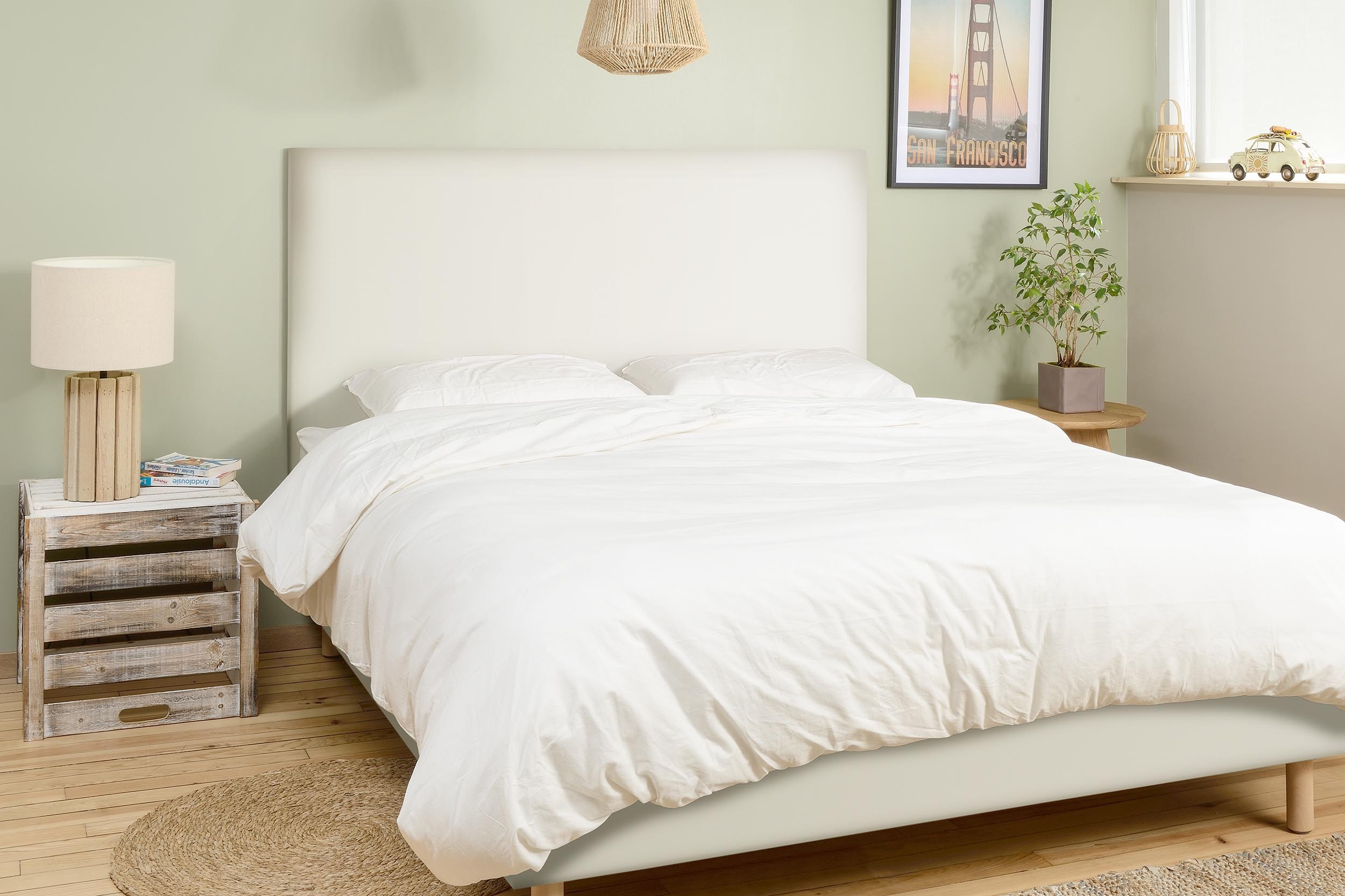 Vous pouvez coordonner cette tête de lit Simili Cuir Blanc avec notre Sommier à Lattes et Cache-sommier du même coloris.